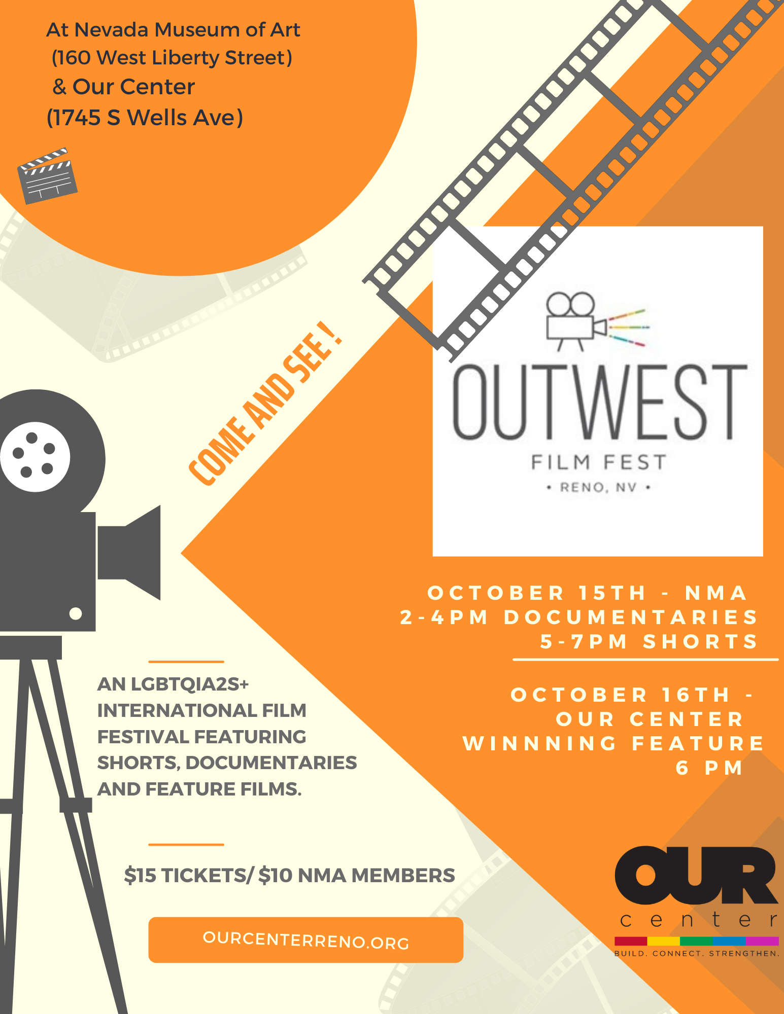 Features Queer Film in Documentary, Short Film and Feature Film Categories. Saturday Sessions 1 and 2 at Nevada Museum of Art. Sunday, 10/16 Session Three at Our Center.