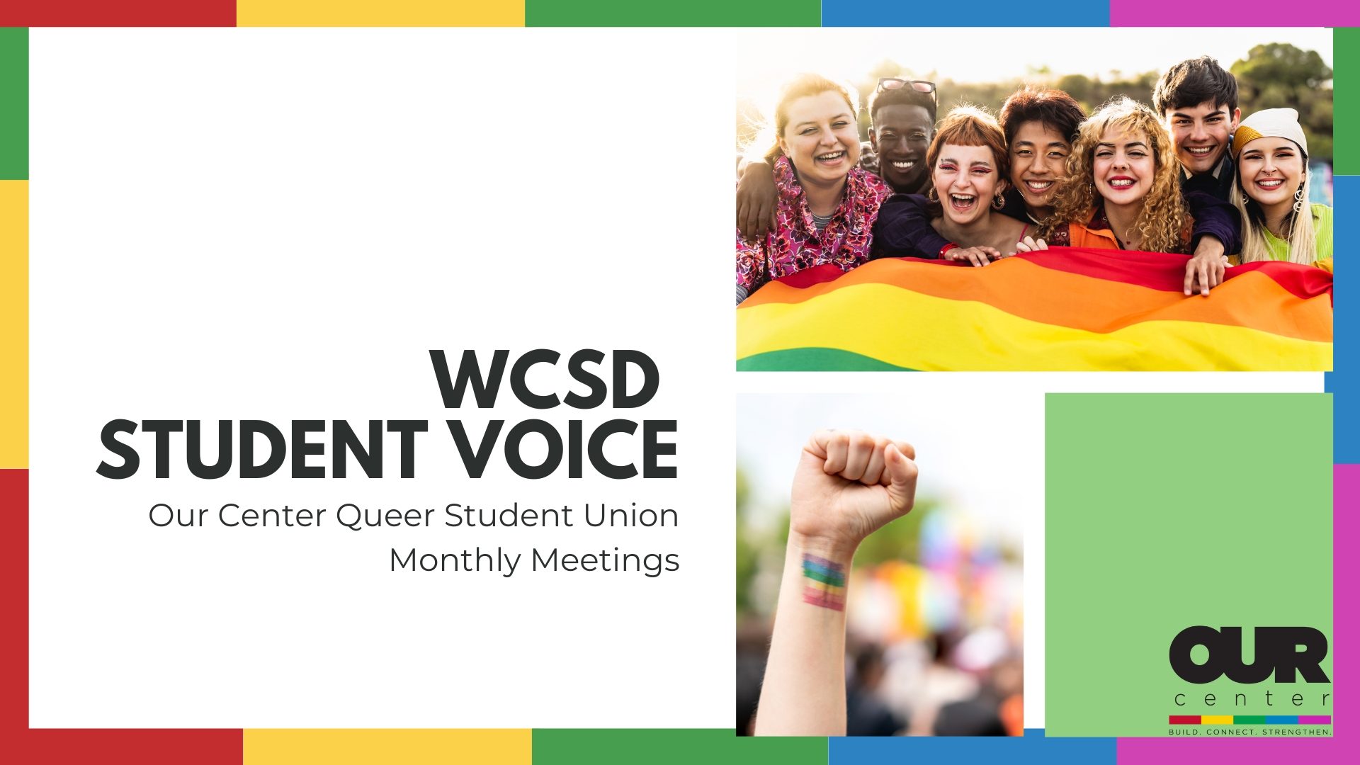 WCSD Student Voice meetings occur every month on the second Friday. Contact Our Center for more information.