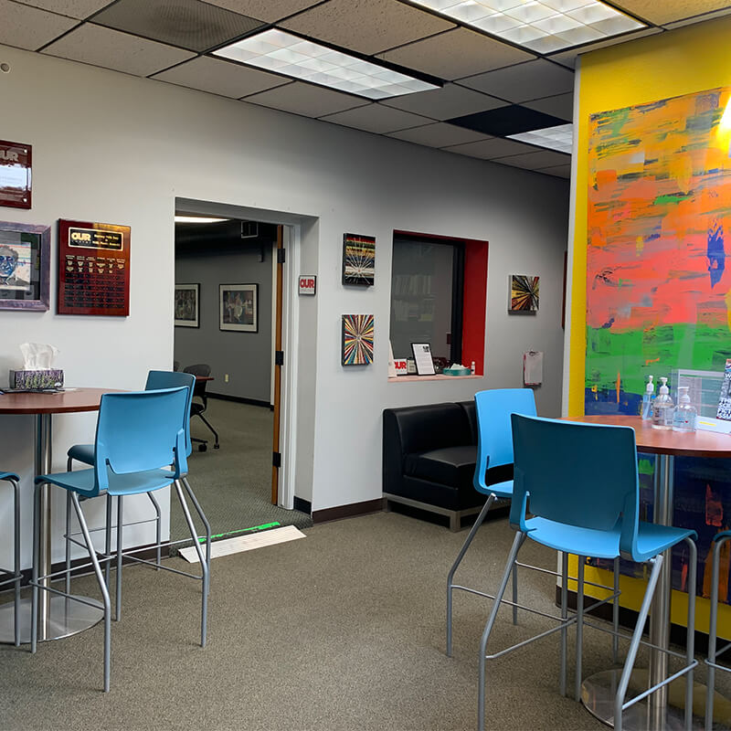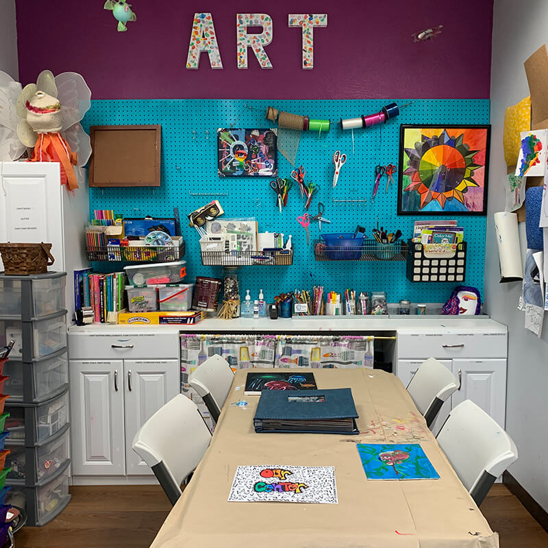 Small enclosed space for up to five people. A variety of art supplies are also available for use in this space.