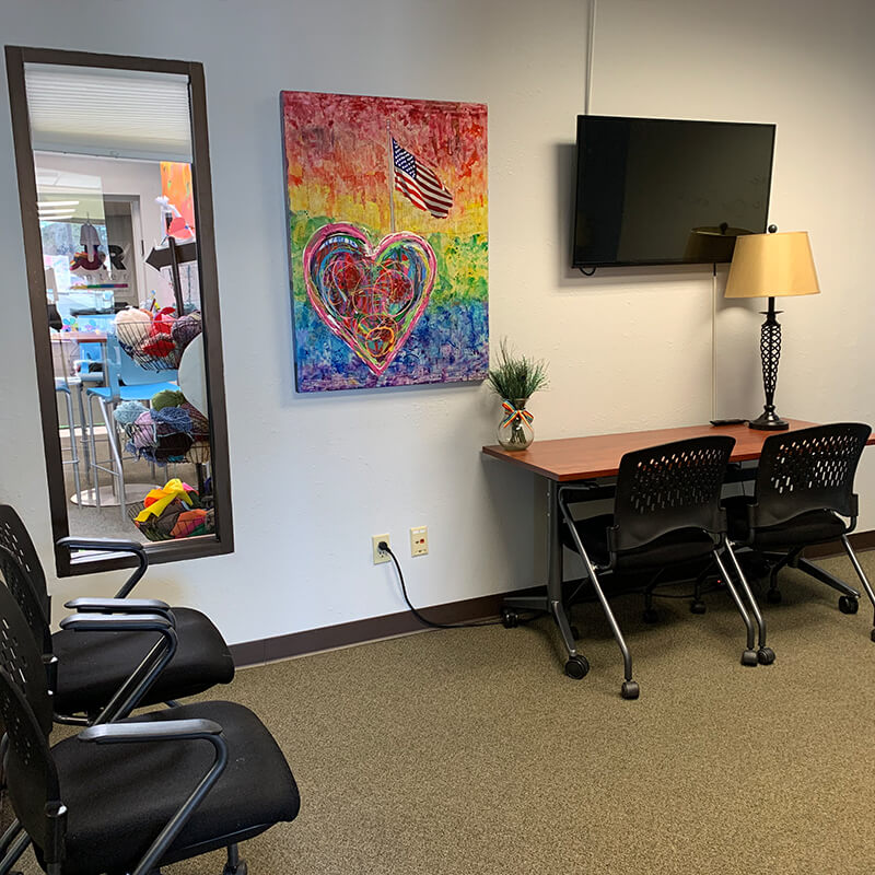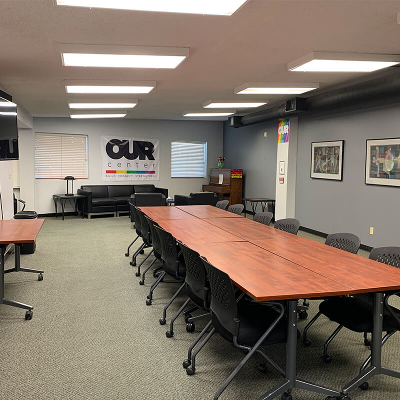 This large space is appropriate for groups up to 60. It includes a television and sound system that are available for use.