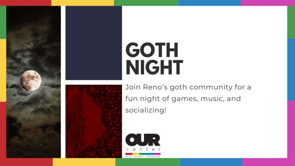 Join Reno’s goth community for a fun night of games, music, and socializing! Goth Night runs from 8 – 11PM every 3rd Friday of the month. Donations suggested at the